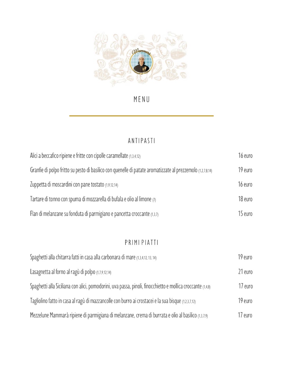 Mammarà Ristorante Menu